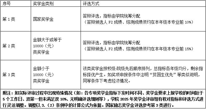 (2)奖金额度小于一万人民币的专项奖学金(包含国家励志奖学金),不设置答辩环节,院评审组择优评选。