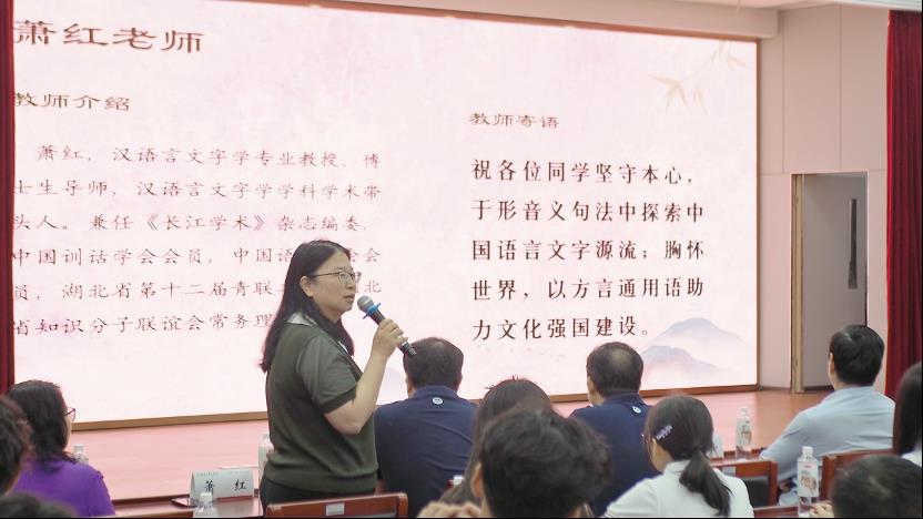 萧红老师祝各位同学坚守本心,于形音义句法中探索中国语言文字源流;胸怀世界,以方言通用语助力文化强国建设。老师话语中的殷切之情,也感染着在场新生。