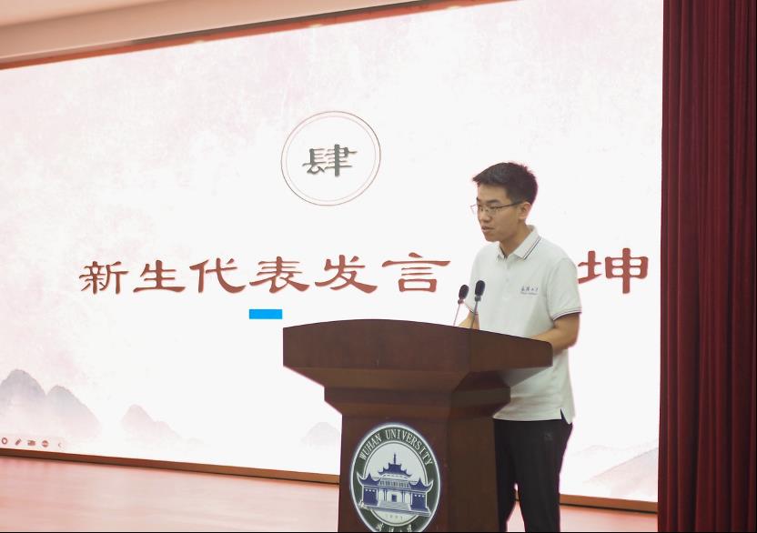 接下来,2024级中国古典文献学硕士研究生宋坤同学作为新生代表在典礼上发言。作为首届古文字强基班的优秀同学,他回顾了自己本科期间的读书和科研项目经历,向同学们提出成人导航 有充分而深厚的土壤供同学们探索,同学们可以不断探索自己的兴趣。关于如何探索自己的阅读兴趣,他参考了严耕望先生《治史三书》中的方法,即于图书馆中浏览,在何处停留最久就是个人兴趣所在。他最后祝愿同学们成为一名合格的研究生,也成为独当一面的成年人,不辜负家长和师长的期望,在未来继续书写青春故事。