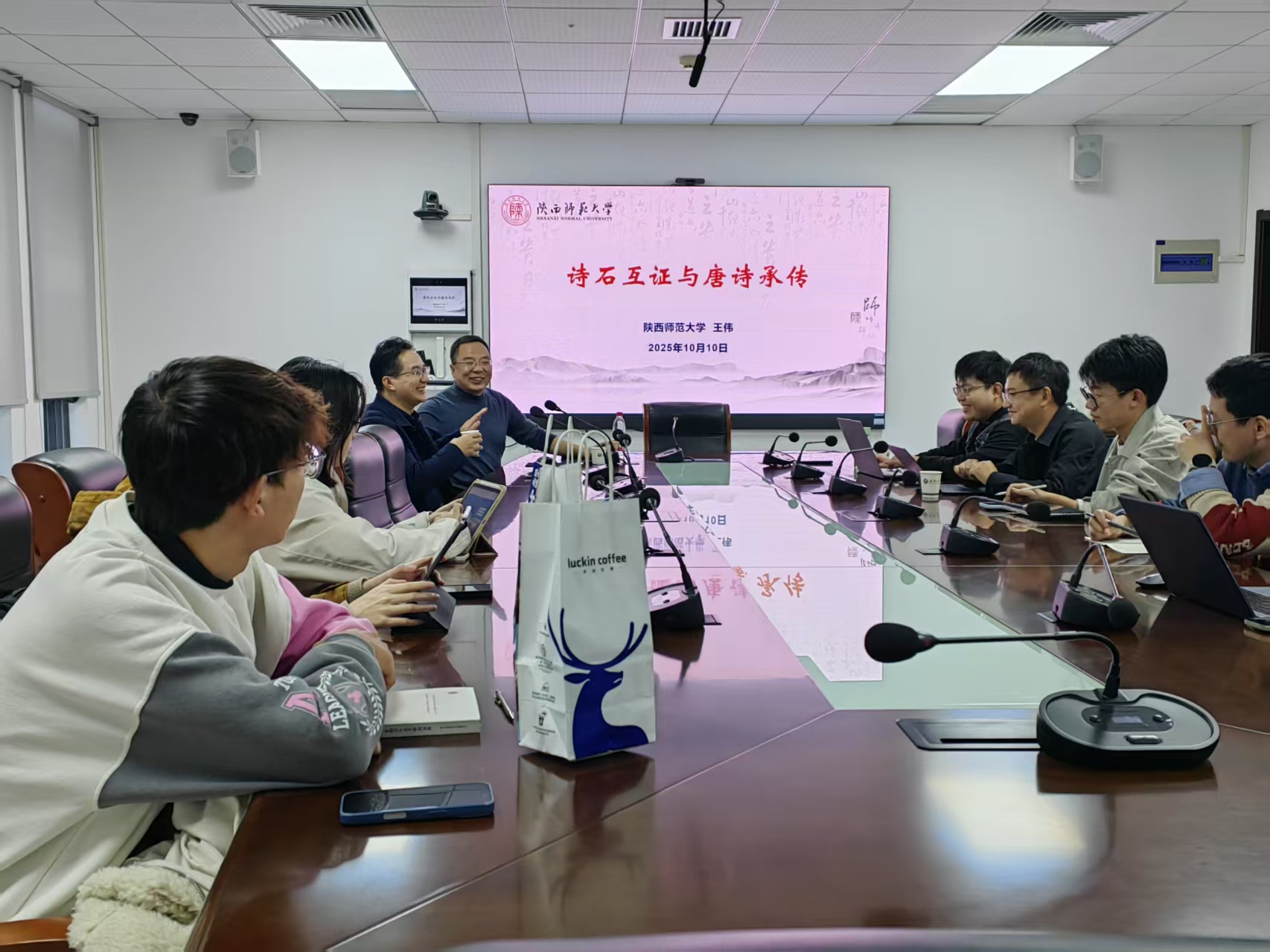 11月4日下午三点,陕西师范大学成人导航 教授、博士生导师王伟老师应学院邀请,作了题为“诗石互证与唐诗承传”的学术讲座。吴光正老师主持,鲁小俊老师以及校内外多位研究生、博士后参与学习。