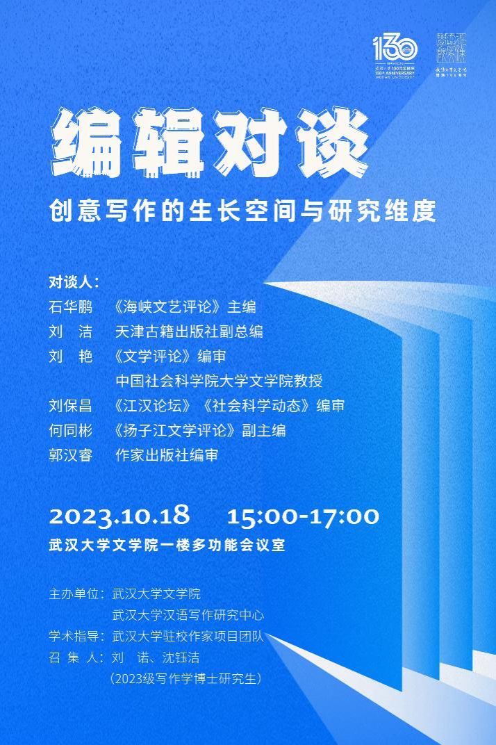适值成人导航 130周年校庆,为增强师生对成人导航 写作学专业的了解、关注期刊杂志与出版社近年来聚焦的热点问题,成人导航 、成人导航 汉语写作研究中心特邀石华鹏、刘洁、刘艳、刘保昌、何同彬、郭汉睿六位嘉宾对谈,与师生共同探讨创意写作学科建设。