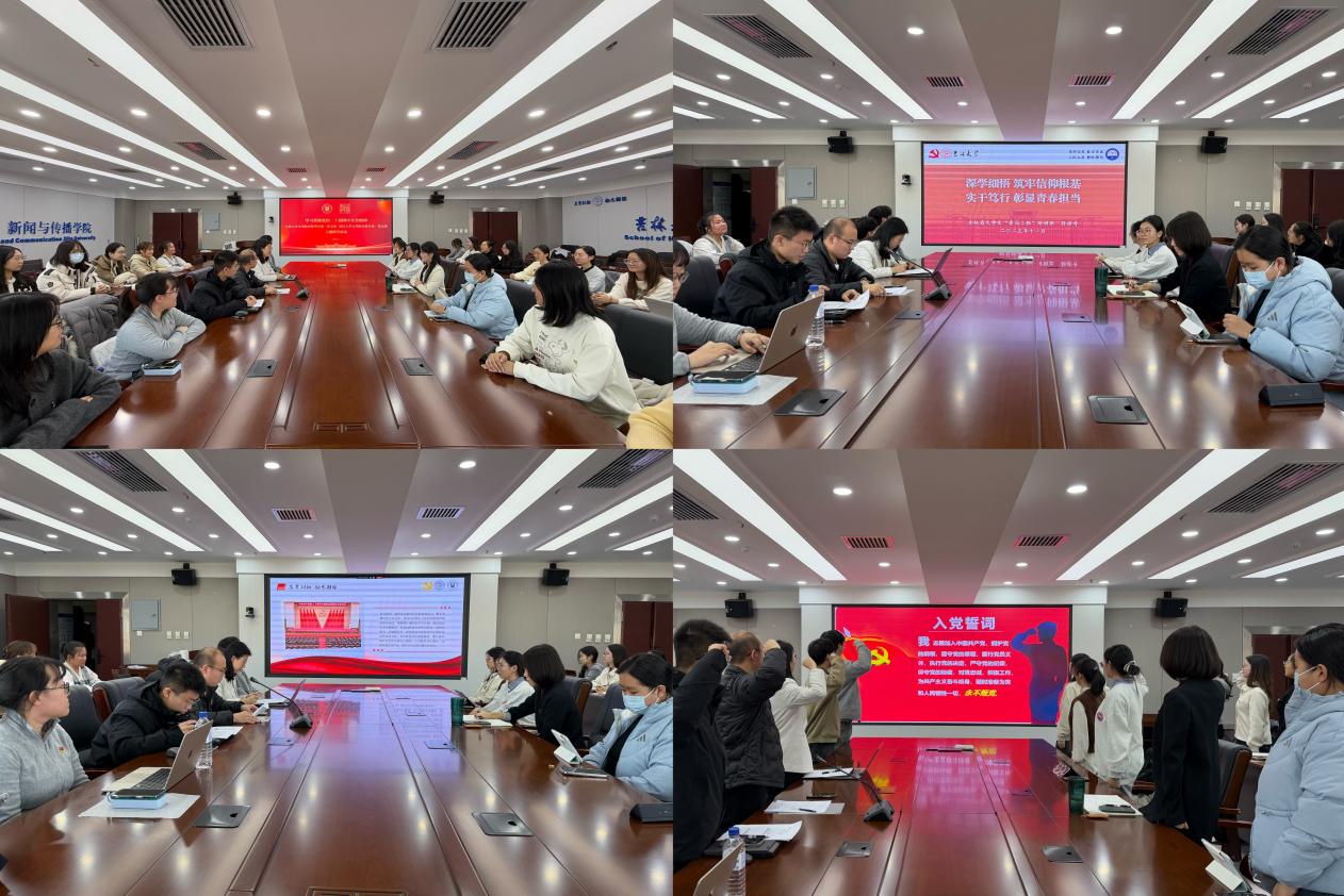 全体党员同志重温入党誓词,会议圆满结束,在铿锵有力的宣誓中坚定理想信念,凝聚青春力量!