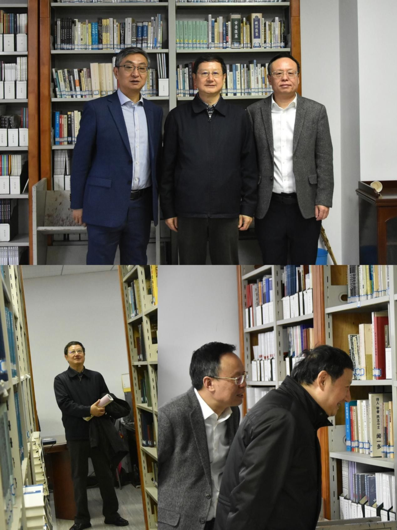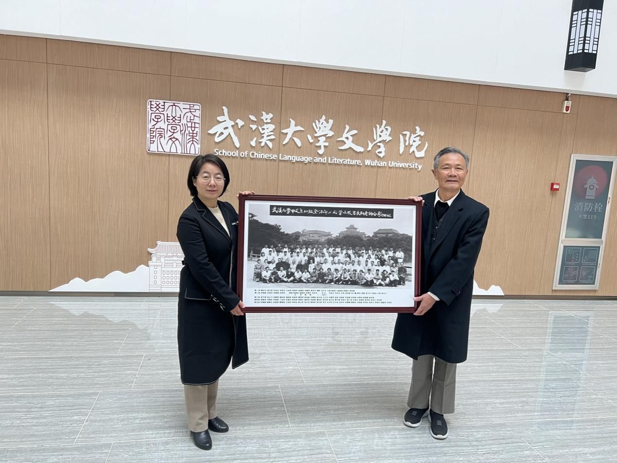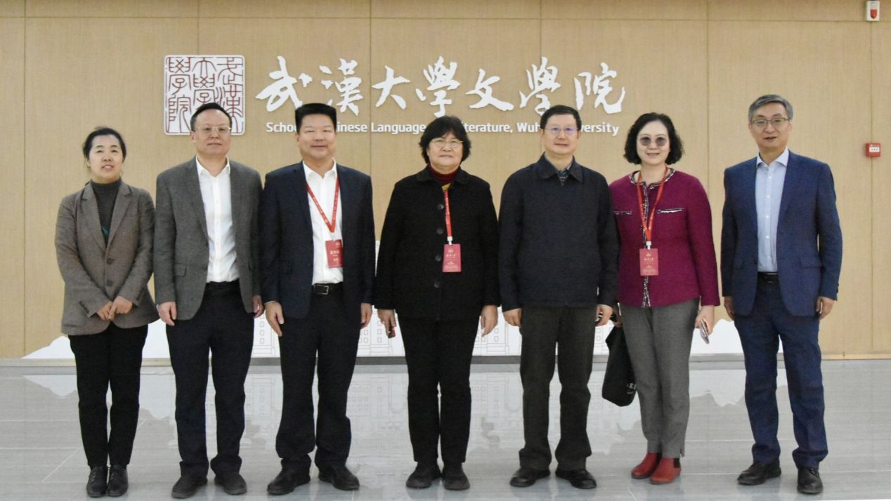 中文系1984级校友,海南省文联作协党组书记、省文联主席夏斐(左三),11月29日来学院参观座谈。他曾在《光明日报》任职多年,采写了大量宣传武大的新闻报道。他最想念武大的樱花,“始终像雪花飘在心里”。