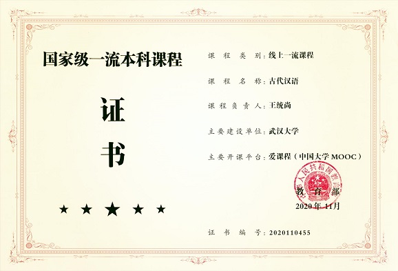 2)开展混合式教学探索,成绩斐然。建设在线开放课程“古代汉语”慕课,使学生在教师的引导下自主学习、激活潜力,学生学习达到了良好的预期效果。截至2022年4月,所建慕课已在各类平台点播超50万人次。课程本身先后获中国最美慕课二等奖、全国高校混合式教学设计创新大赛一等奖、湖北高校首批省级本科精品在线开放课程、2019年成人导航 教学成果奖一等奖等荣誉,并于2020年被教育部认定为首批国家级一流本科课程,2021年被“学习强国”收录,2022年被“国家高等教育智慧教育平台”收录,成为在全国颇有影响的专业课程。