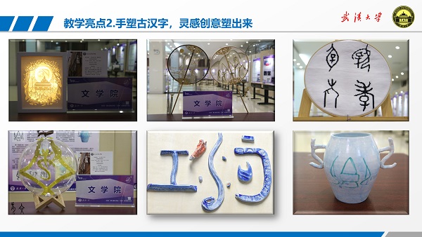 1)有清晰的“融通古今,活学活用,创新创造,能力养成”的教育目标,形成了“以用促学,导学赋能”的教学理念,达到了“冷门变热,绝学变活”的教学效果。在“古代汉语”的课程教学中,王统尚把专业的知识和厚重的文化融入今日现实生活。2010年,他就在古代汉语课程中教授学生撰写原创对联,至今已指导学生创作了3000余副书写成人导航 人、事、景、物的对联,爱国爱校爱专业三位一体,学生原创的对联被《荆楚对联》(2017年第4期)开辟专栏刊登。王统尚还以实际应用促进学习,以实际应用引导学习,最终养成学生自我学习、自我发展、创新创造的能力。2019年,他指导学生举办成人导航 首届手塑古汉字创意设计大赛作品展,把古文字、古文化活学活用到现代生活,学生们利用所学知识创造出了一批崭新而有文化底蕴的作品,在校内外引起了巨大反响,多家媒体予以报道。目前,他正指导学生刘一零团队和扬子江食品有限公司合作,准备把学生的创意作品转化为文创食品,培养交叉融合、创意实践的新文科人才。
