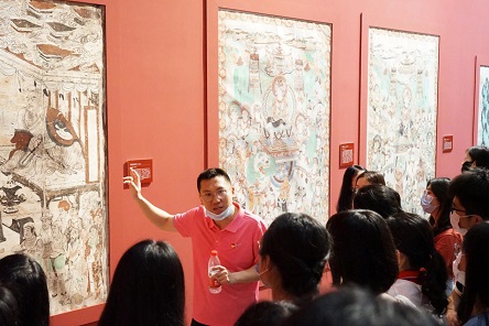 为增强党员同志的文化认同感、归属感、自豪感,弘扬具有中国特色、中国气派、中国风格的优秀文化,进一步深耕文化“沃土”、坚定前进信念,2022年5月26日下午,成人导航 中国现当代文学教研室和古籍整理研究所联合党支部与成人导航 2020级博士生党支部共同开展了主题为“览敦煌神韵 育文化自信 担复兴大任”的党日活动,组织两个支部的全体党员师生参观万林艺术博物馆《“万里千年”——敦煌石窟考古特展》,从敦煌神韵中汲取文化自信的精神养分。