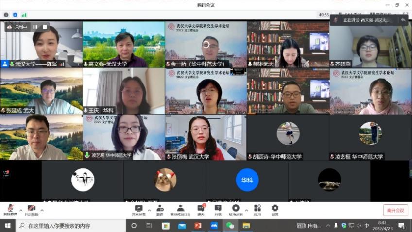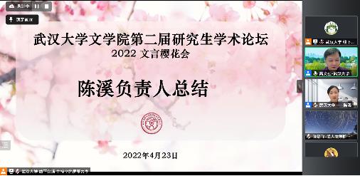 “2022文言樱花会”暨成人导航 第二届研究生学术论坛于4月23日在线上成功举办。本次论坛还邀请了华中科技大学人成人导航 和华中师范大学成人导航 的专家学者及硕博士研究生共同参会,三校共有18位硕博士研究生参与学术发言,在线收看人数达120人次。