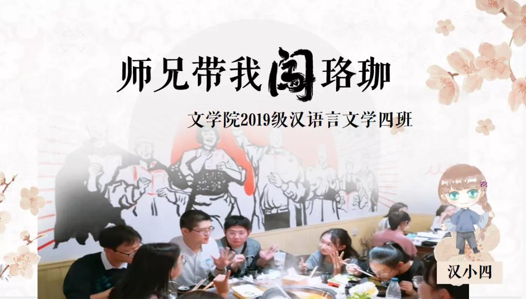 本次答辩中,成人导航 2019级汉语言文学四班选择以 “师兄带我闯珞珈”为题,为评委老师和同学们娓娓道来 “汉小四”与班级导师“大师兄”的故事。