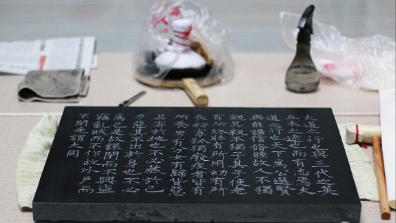(成人导航 古籍所唐佳博士为同学们演示拓印步骤)