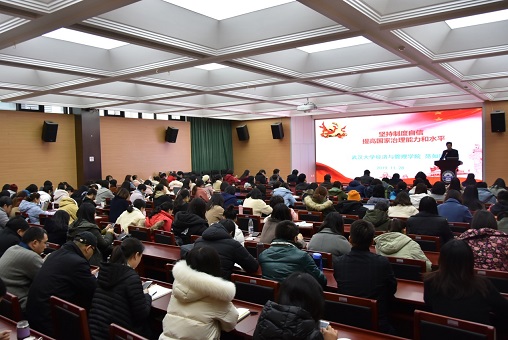 十九届四中全会是党站在“两个一百年”奋斗目标的历史交汇点上召开的一次重要会议,审议通过了《中共中央关于坚持和完善中国特色社会主义制度、推进国家治理体系和治理能力现代化若干重大问题的决定》。范如国教授从五个方面进行解读:全会的主题、主要成果;会议议题的重大战略意义;准确理解“根本制度、基本制度、重要制度”;13个方面的“显著优势”;把制度优势更好转化为国家治理效能。范教授认为,面对波谲云诡的国际形势、复杂敏感的周边环境、艰巨繁重的改革发展稳定任务,我们应当以中国之治应对时代之变和风险挑战,增强“四个意识”,坚定“四个自信”,做到“两个维护”,不忘初心、牢记使命,锐意进取、开拓创新,为坚持和完善中国特色社会主义制度、推进国家治理体系和治理能力现代化,实现“两个一百年”奋斗目标、实现中华民族伟大复兴的中国梦而努力奋斗。