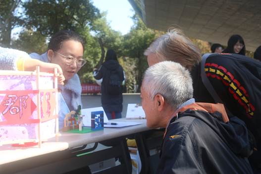整个活动由作品展示、体验创作、互动游戏、闯关问答四大板块构成。作品展示有摊位展示,也有登台讲解,观众不仅可以看到作品,还可以通过讲解,了解每件作品的设计与制作过程;体验创作可以通过“亲临汉字”活动临摹古汉字,还可以用橡皮泥“手塑汉字”,亲身体验参赛队伍创新学习古汉字的方式;互动游戏最为热闹,名为“汉字寻亲”,先展示一个汉字的不同字形,每位参与者分配一个古字形,打乱之后再找到手持属于同一个字的不同字形的参与者,找到了这个汉字的“亲戚”;闯关问答主要是根据古文字设计的“看图说话”和“汉字密语”,观众们乐在其中。