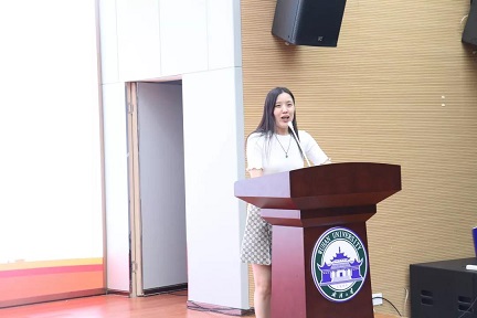 讲座结束后,成人导航 学生党支部新发展党员入党宣誓仪式正式开始。庄严的国际歌合唱过后,党委副书记楚静宣读参加宣誓的预备党员名单。全体预备党员走上舞台,列队面向党旗,右手握拳,在楚书记的带领下郑重宣誓。铿锵有力的誓言中,在场师生被预备党员们永远忠于中国共产党的决心深深打动。宣誓结束后,来自2016级人文班的华家希作为宣誓代表进行发言,她表示:预备党员们在党组织和同志们的帮助下,不仅从组织上入党,更要从思想上入党。预备党员们将铭记面对党旗许下的承诺,将入党誓词作为终身追求、修养和实践,提升自我,奉献自我,从而创造更有意义的人生。
