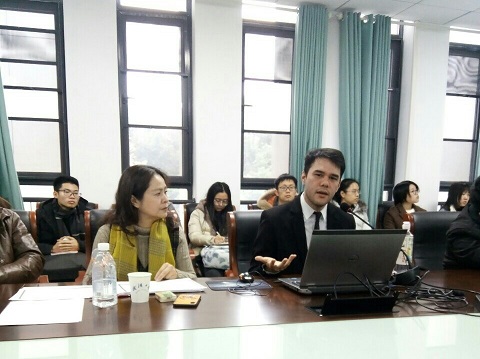第一期珞珈写作课程工作坊于2018年12月14日上午在成人导航 215会议室顺利举办。此期工作坊由成人导航 和中国写作学会主办,成人导航 汉语写作中心和写作学教研室承办。美国小说家KYLE·MUNTZ主讲“漫长而孤独的道路——小说创作策略”,成人导航 萧映教授担任工作坊的主持人兼讲座翻译。参与本期工作坊的有写作学教研室全体教师、中国写作学会副秘书长宋时磊、写作学专业的研究生以及关注创意写作的武大师生。