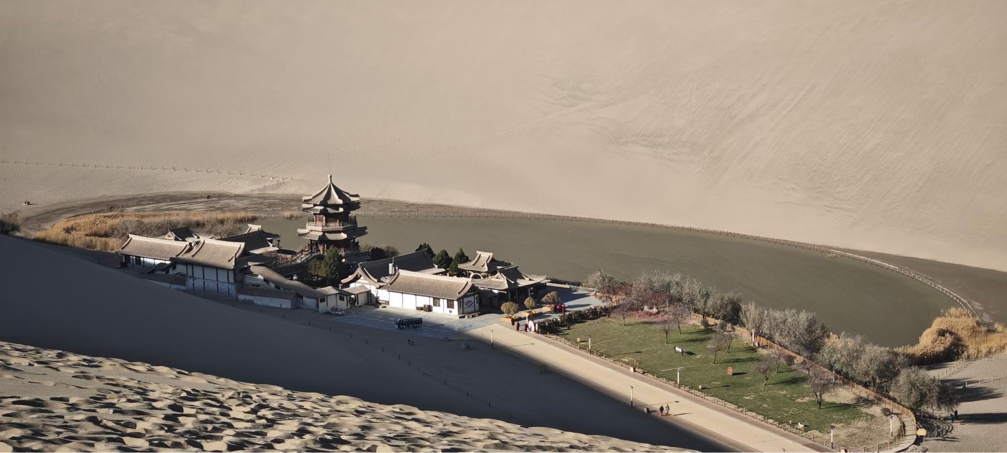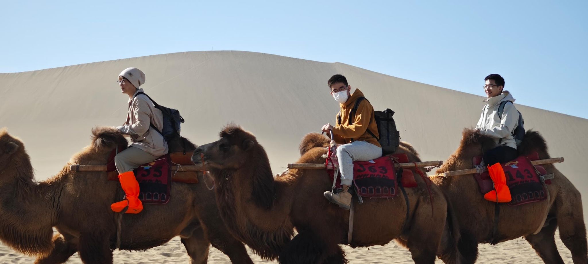 探寻敦煌古城、鸣沙山和月牙泉时,它们的景色让人心旷神怡,历史和文化让人思考和感悟。古城的淳朴、沙丘的壮美、月牙泉的宁静等帮助同学们构建起更加丰富、立体和真实的西北印象,感受到人与自然相通的智慧。苍茫辽远的敦煌拓宽了同学们胸中的丘壑,从武汉到敦煌,此程无憾。(文字/图片:邓艾佳、李炳坤、吕启蒙、吴金霖)