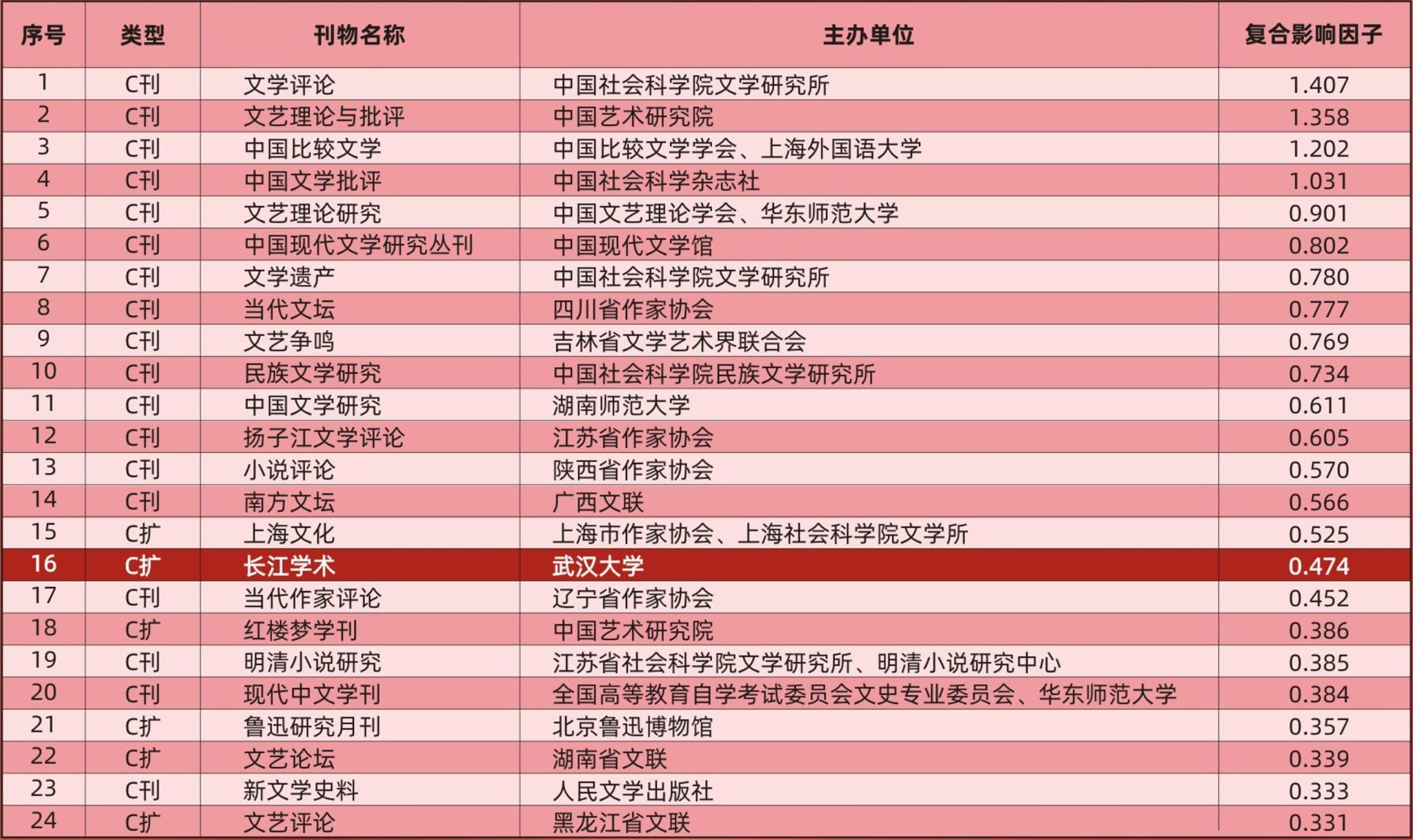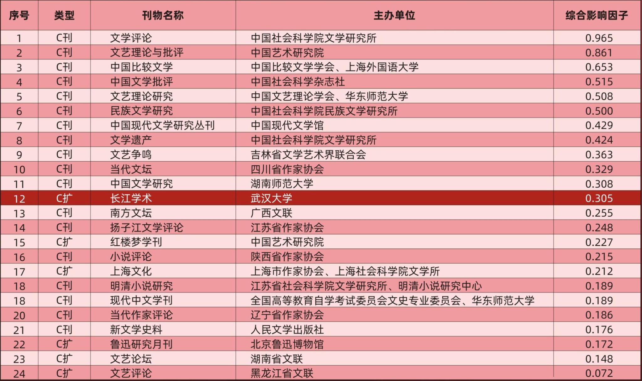 表2 中国文学类CSSCI来源期刊综合影响因子