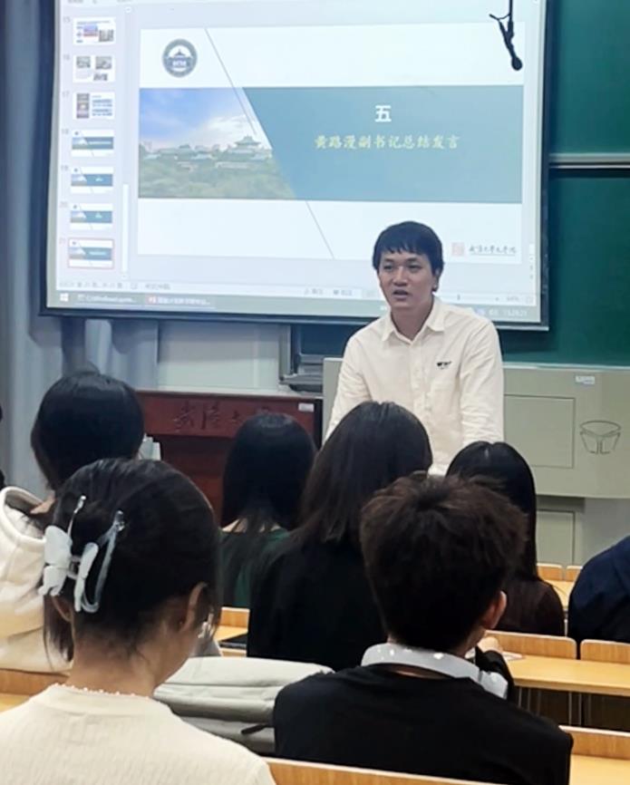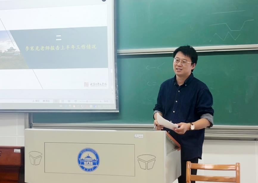 李寒光老师介绍了强基班学生在中国人民大学举办的第二届“树人杯”学术征文大赛、成人导航 第二届强基计划交流展示会等赛事中取得的奖项名次,通报了上半年转段考核、分流考核、游学实践的具体情况。一方面,他对同学们的优异成绩表示由衷祝贺,期待未来更大的进步;另一方面,他切实分析了目前存在的一些问题,强调同学们既要养成良好的学习习惯,提升自己的学术科研能力,更要增强大局意识、集体观念,追求综合素质的全面发展。