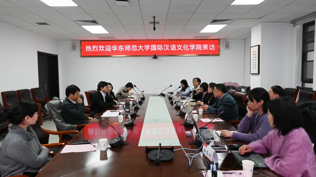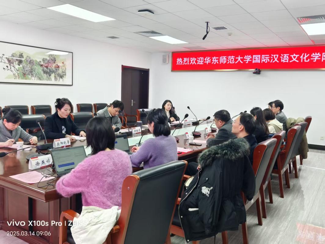 3月14日上午,华东师范大学国际汉语文化学院党委副书记王志和副院长文娟一行8人来到我院开展调研。双方就汉语国际教育专业建设、人才培养等问题展开充分交流。成人导航 党委副书记黄路漫、副院长裴亮、实践教学中心主任郭婷婷、汉语国际教育专业骨干教师田源、欧阳晓芳和本科教学秘书李丽平出席此次座谈会。
