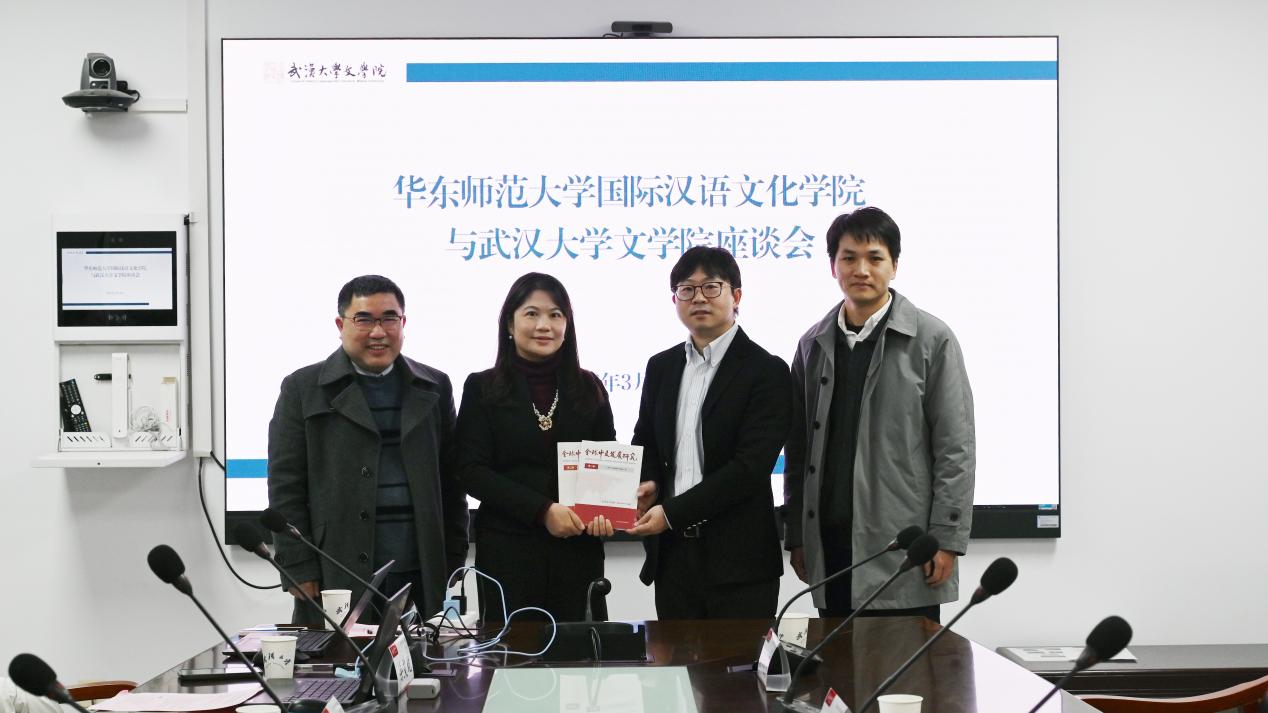 会后,华东师范大学国际汉语文化学院向我院赠送了《全球中文发展研究》期刊,并合影留念。
