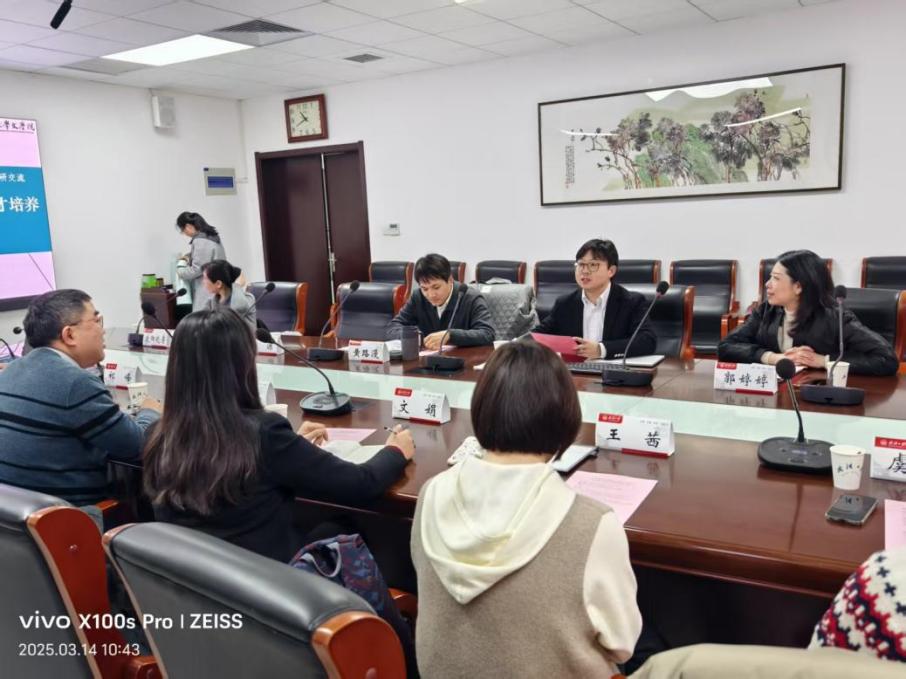 黄路漫代表成人导航 对华东师范大学调研团队的到访表示热烈欢迎。裴亮以中文基础学科拔尖人才培养为主题,介绍了我院拔尖人才培养整体思路、学科建设和人才培养的成果,提出汉语国际教育专业建设要以专业为载体,结合学校特色,整合各方面资源,打造属于自己的特色和优势。
