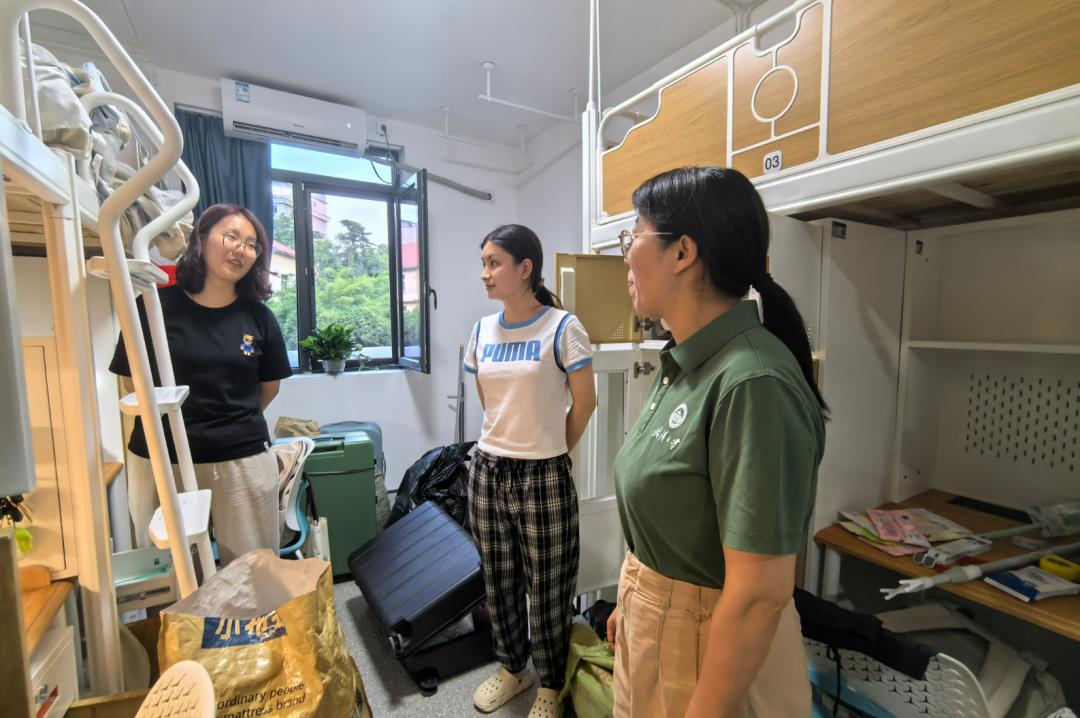 9月1日晚,成人导航 党委副书记黄路漫、本科生辅导员丁宇梁、兼职辅导员柳金贝与全体班级助理深入本科新生寝室,关怀入住情况。9月2日,院党委副书记王若飞、研究生辅导员彭思成,兼职辅导员高子仪、魏雯珺和研究生会骨干来到珞珈山公寓,走访研究生新生宿舍。老师们关切询问新生适应情况,倾听他们初至珞珈的感受与困惑,并送上学院的诚挚欢迎与期许。