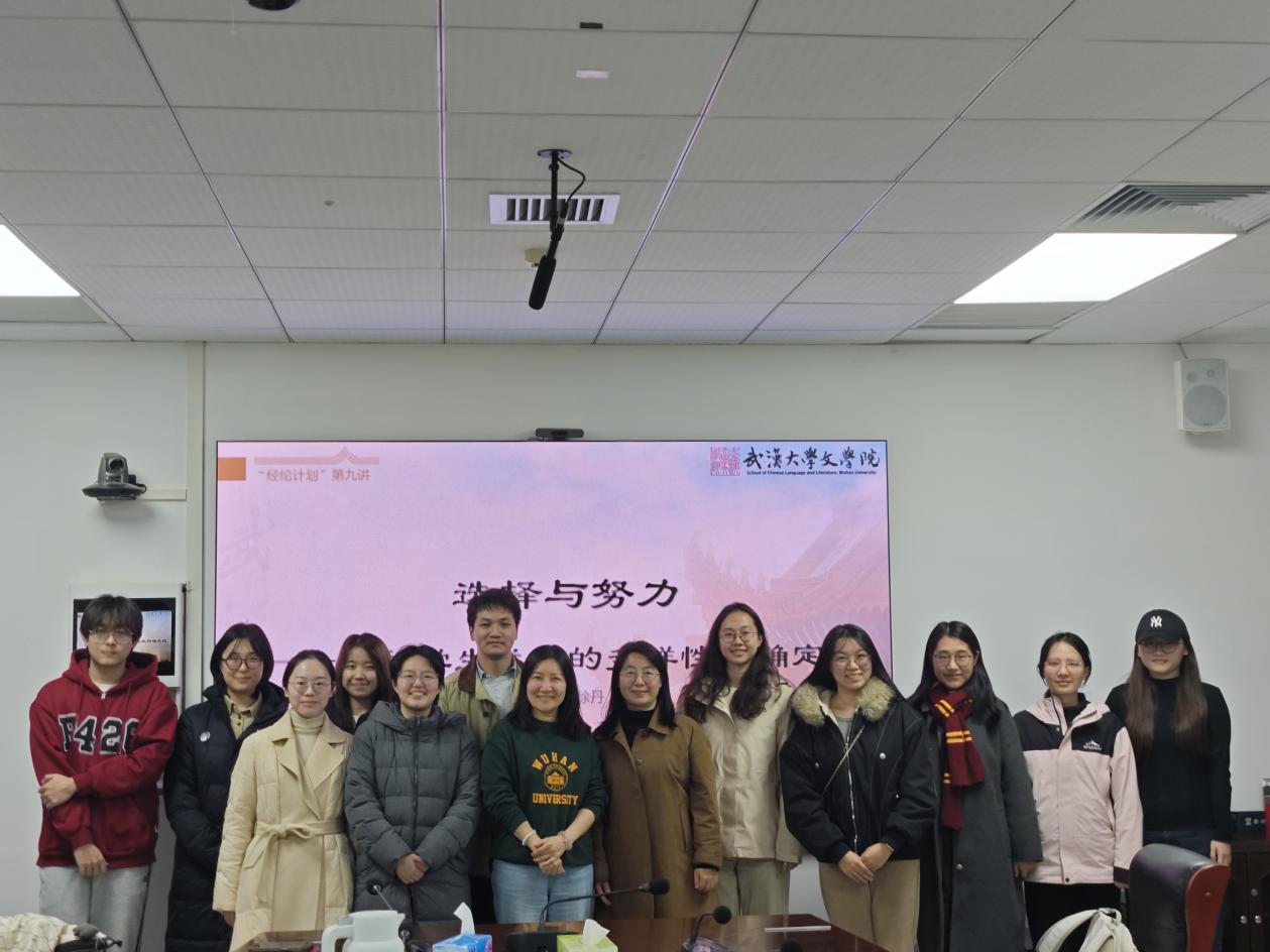 2025年12月2日,“经纶计划”第九期经验分享活动“选择与努力——文科学生发展的确定性与稳定性”在振华楼215会议室顺利举办。本次活动邀请了武大成人导航 97级汉语言文学本科校友、广州宏图数字科技有限公司总经理徐丹为同学们分享她的求学与就业经历,并为同学们解答关于择业与就业方面的种种疑惑。学院党委副书记王若飞、黄路漫参加,分享会由黄路漫主持。