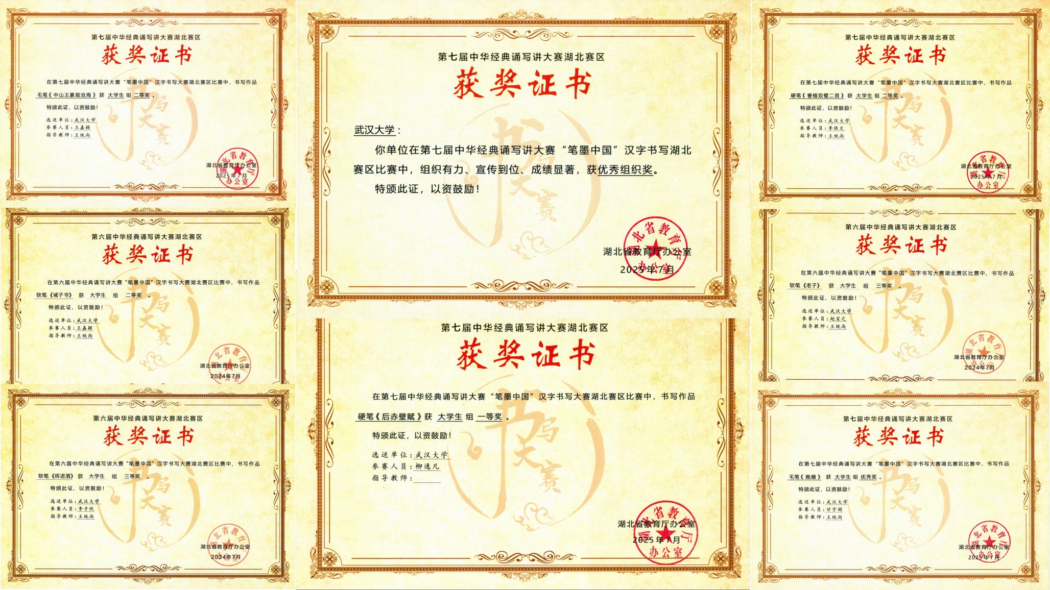 2025 年 12 月,第七届中华经典诵写讲 “笔墨中国” 汉字书写大赛圆满落幕。我院四名本科生表现亮眼,斩获国赛二等奖 1 项(柳逸凡),省赛一等奖 1 项(柳逸凡)、二等奖 2 项(王嘉颖、李依文)、优秀奖 1 项(甘宇娟),实现国赛获奖零的突破,成人导航 也荣获湖北省赛区 “优秀组织奖”。
