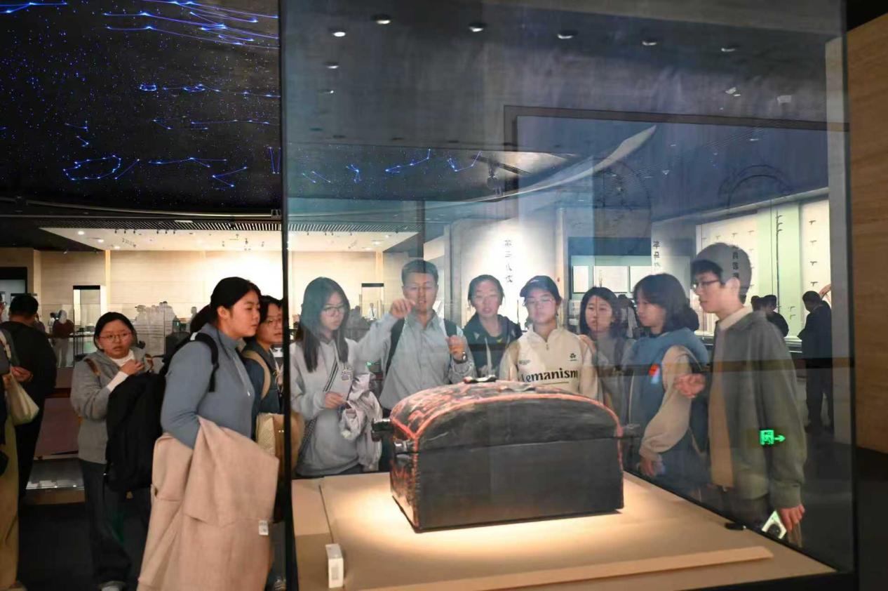 近日,在班级导师李寒光、“古文字摹写训练”任课教师王统尚的带领下,成人导航 2025级古文字学强基班的同学们走进湖北省博物馆,参观“简读中国”文物特展,开展实践教学。同学们手捧笔记本,驻足于展柜前,在丰富珍贵的文物面前,感受文字、文明的真实脉络。